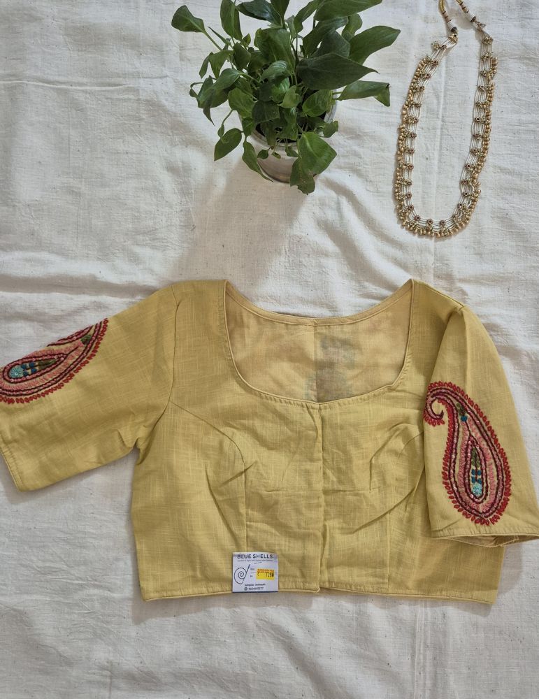 • Hand Embroidery Paisley (Koyri) Pattern Handloom Cotton Blouse Cream